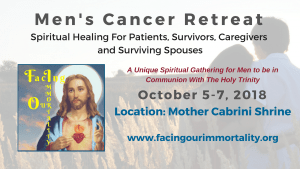 Please join our Men’s Cancer Retreat October 5-7, 2018 at Mother Cabrini Shrine.
