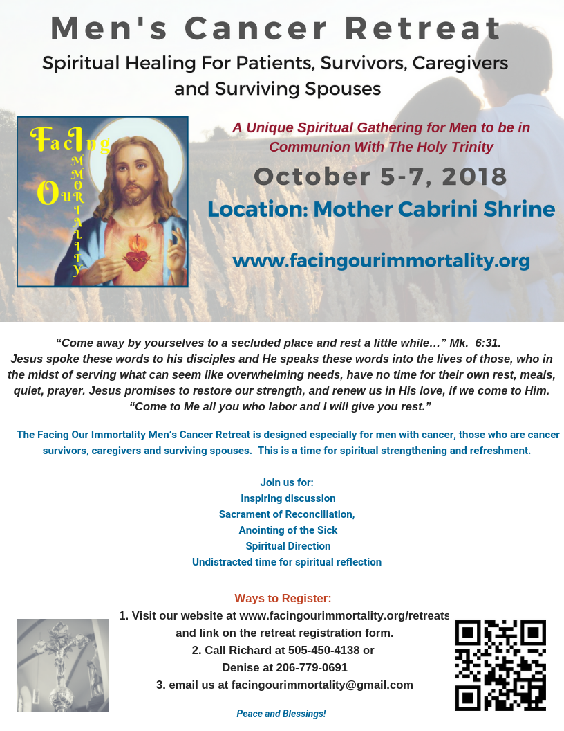 The Facing Our Immortality Spiritual Exercise is an integral part of our monthly cancer support group. It is here where we form relationships with one another and in Christ. We never walk alone.